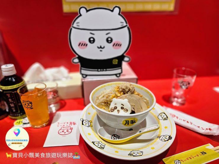 最讓人感動的是,當你點完餐後,店員會把對應角色的小立牌放在你桌前。點了「小八貓」?那他就會坐在你對面陪你吃麵啦~再加上免費提供的「角色圍兜兜」,一邊吃麵、一邊保護衣服不被湯汁噴到,貼心又超有趣!